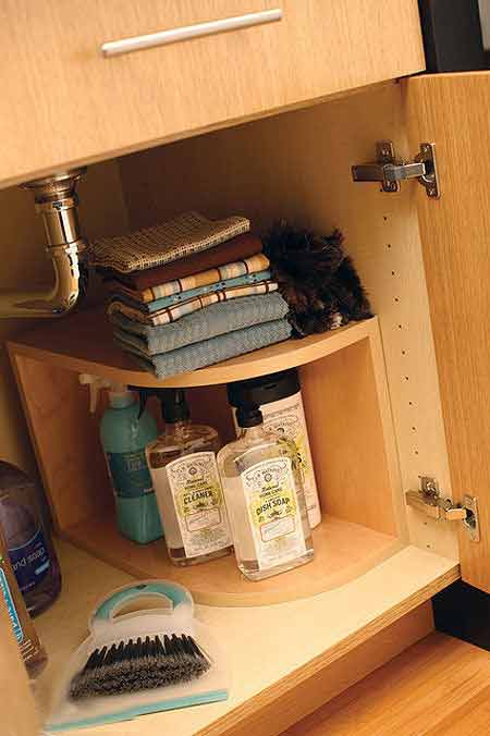 小編的話:廚房(廚房裝修效果圖)水槽下的柜子,由于排水管的阻擋,很難設(shè)置完整的隔層,但是添入半個(gè)柜體大小的可移動(dòng)隔層,卻是十分可取的,如此款案例,隔層的添置瞬間將衛(wèi)浴柜整潔收納。
