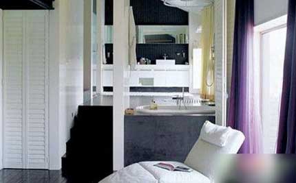 浴室與主臥之間的木質(zhì)格柵折疊門透光且通風(fēng),洗浴時雖然呈全封閉狀態(tài),卻毫無憋悶之感,既能把新鮮干燥的空氣送進浴室,又能阻隔浴室的潮氣散進臥室。其它時間可將格柵門打開,讓浴室保持干燥清潔。
