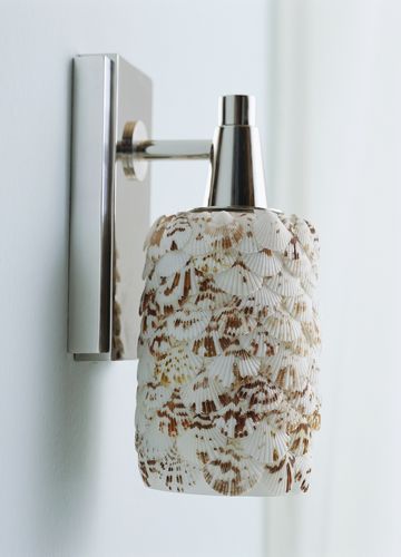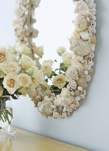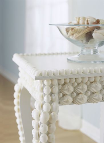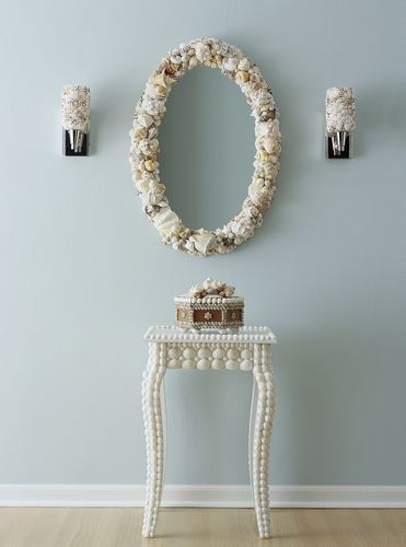2 不同的物件要選擇合適的貝殼來搭配。雞尾酒桌和壁式燭臺僅僅用了一、兩種貝殼;鏡子與盒子上卻聚集了各種形狀和大小的貝殼,看似隨意,實際上都是經(jīng)過細心安排的。